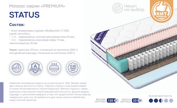| Подпись к товару | Max. вес на спальное место - 120 кг, С независимыми пружинами Multi Pocket S1000, любой размер матраса |