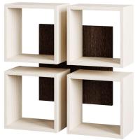 Изделие состоит из четырех квадратных ниш, скрепленных между собой небольшим фасадом темного цвета, с помощью которого полку можно повесить на стену,