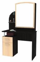 Современный, вместительный и стильный Галант-5 не просто туалетный столик, а место силы любой женщины. Место, где можно привести себя в порядок, приготовиться ко сну, красиво и удобно хранить косметику, аксессуары, нужные мелочи. Для этого предусмотрены открытые полочки рядом с зеркалом для самого необходимого, выдвижной ящик и шкаф с распашной дверцей в нижней части стола, а также открытая ниша под столешницей. Изюминка модели – большое зеркало, за которым скрываются небольшие полочки. Таким образом, столик станет не только любимым местом отдыха, но и отличным помощником в быту.